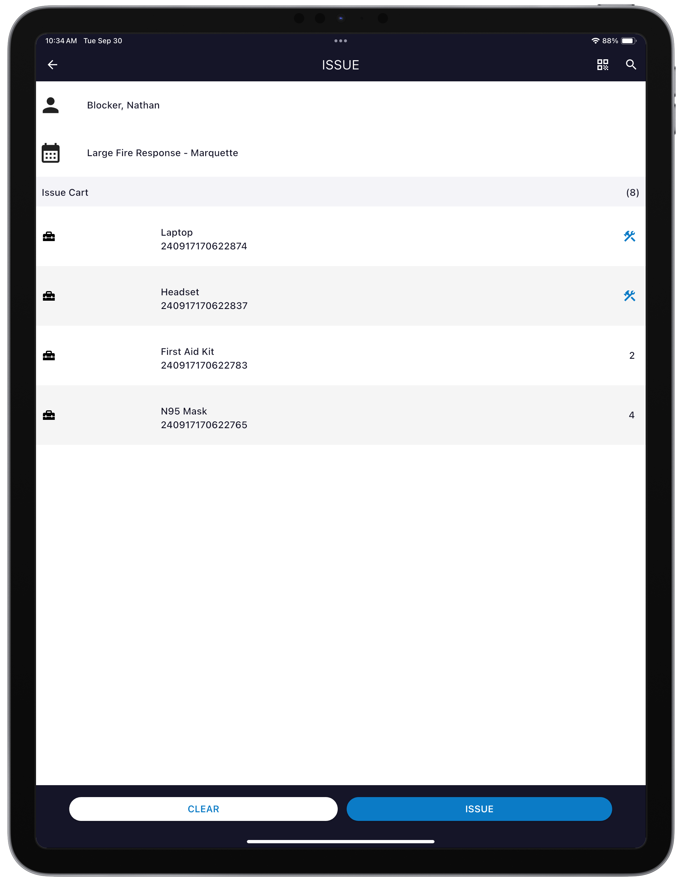 Issue, return, view, adjust, and audit assets within the app to maintain real-time visibility of equipment locations. Track asset assignments by individual and optionally associate equipment issuance with a specific event for streamlined accountability.